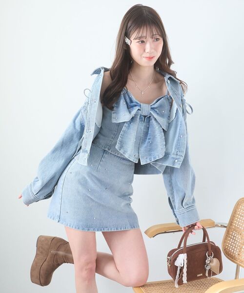 1/22 新色【ブラック】予約開始!きらめくリボンにときめく♪着るだけで主役級のスイートなビスチェが登場■デザインリボン部分に散りばめたビジューが、胸元を彩るビスチェ。立体的なリボンデザインが華やかさを引き立て、着るだけで主役級の存在感を発揮します。きれいめなツイード素材とカジュアルに着られるデニム素材の展開で、カラーによって印象が変わるので、気分に合わせて選んでいただけます。デートやイベント等特別な日のスタイルにもぴったりな一着です。■サイズ感フィット感のあるサイズ感。後ろにゴムが入っているので着心地抜群です。自然に身体にそうコンパクトなシルエットでスタイルアップ効果が期待できます◎■スタイリング1062070100 ビジューリボンGジャン、1062040102 ビジュー付き台形ミニスカパン とセットアップでの着用がおすすめです。スッキリシルエットのロングスカートをあわせてきれいめスタイルにも、パンツをあわせて甘さをほどよく抑えたカジュアルスタイルにも◎・・・・・・・・・・・・・・・・・・・・・・透け感:なし裏地:あり(前身頃)伸縮性:あり(背面)光沢感:なし生地の厚さ:普通・・・・・・・・・・・・・・・・・・・・・・■商品のお気に入り登録:再入荷通知やのこりわずか、お得なプライスダウンの情報も受け取ることができます。ぜひご登録ください◎※サンプルでの撮影の為、製品と仕様が異なる場合がございます。※商品の色味は、撮影場所や光のあたり具合などにより色味が違って見える場合がございます。また、お客様のお使いのモニター環境などにより色味が異なって見える場合がございます。予めご了承の上ご注文下さい。