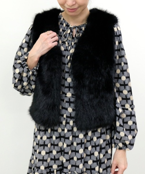 思わず触れたくなるような質感が魅力の羽織るだけで、シーズンムードを高めるフェイクファーベスト【Material】まるでリアルファーのような柔らかさと滑らかな手触りのフェイクファー素材を使用。【Design】毛足の長いフェイクファーを贅沢に使用した、リュクスな印象のベスト。無駄のないシンプルなノーカラーデザインで、合わせるアイテムを選びません。ラフに羽織るだけでもサマになります。 【Size】ニットやワンピースの上にもレイヤードしやすい丈感。ボリュームのあるファーでも軽やかな印象になります。【Styling Point】シンプルなカットソーやニットの上に羽織るだけで、季節感のあるコーデが完成。デニムでカジュアルにまとめても、ワンピースやロングスカートに合わせてフェミニンに着こなしても◎上からコートを重ねてファーを覗かせるスタイリングもおすすめです。秋口から真冬まで長く活躍する、着回し力抜群の1枚です。 ___________________________★商品のお気に入り登録 完売カラーの再入荷通知や、ラスト1点の通知、セールの通知も受け取ることができます。是非ブランドの"お気に入り登録"もご一緒にお願いいたします。 ※画像の商品は光の反射や角度により、実物と色味が異なる場合がございます。 また、表示のサイズ感と実物は若干異なる場合もございますので、予めご了承ください。 ※着用、お取り扱いの際は、商品についている品質表示とアテンションタグを必ずご確認ください。-DOLLUPOOPS | ドールアップウップス-【Add a little essence】ライフスタイルの多様化が進む現代変わり続ける今をとらえ、自分らしい感性を大切にする女性に向けて" より美しく" 毎日を" 彩る" ワードローブを。日常に調和しつつ、" 普通 " に少しだけエッセンスをたして、他にない特別な一品を提案します。-Instagram-公式インスタグラム【dollupoops.tevalt_official】※商品のサイズ感やご質問は【dollupoops.tevalt_official】のインスタアカウントDMにて承っております。お気軽にご相談くださいませ。