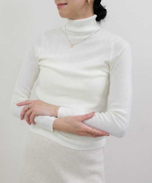 しなやかにフィットして美しいシルエットを叶える、ベーシックなタートルネックニット【Material】柔らかく滑らかなタッチが魅力のニット素材を使用。ウール混のあたたかみを感じられる生地感で、秋冬のインナーとして重宝します。肌当たりがやさしく、チクチクしにくいのも嬉しいポイントです。【Design】シンプルながらも洗練された印象のタートルネックデザイン。首元までしっかり包み込む高さのあるネックが、暖かさと上品さを両立。ミニマルなデザインながら、着回し力の高い万能アイテムです。【Size】タイトすぎず、程よくフィットするコンパクトなサイズ感。ヒップにかからない丈感で、ボトムイン・アウトどちらもバランスよく決まります。【Styling Point】1枚での着用はもちろん、ジャンパースカートやベスト、カーディガンのインナーとしても。オンオフ問わず活躍する、ワードローブに欠かせない定番ニットです。___________________________★商品のお気に入り登録 完売カラーの再入荷通知や、ラスト1点の通知、セールの通知も受け取ることができます。是非ブランドの"お気に入り登録"もご一緒にお願いいたします。 ※画像の商品は光の反射や角度により、実物と色味が異なる場合がございます。 また、表示のサイズ感と実物は若干異なる場合もございますので、予めご了承ください。 ※着用、お取り扱いの際は、商品についている品質表示とアテンションタグを必ずご確認ください。-DOLLUPOOPS | ドールアップウップス-【Add a little essence】ライフスタイルの多様化が進む現代変わり続ける今をとらえ、自分らしい感性を大切にする女性に向けて" より美しく" 毎日を" 彩る" ワードローブを。日常に調和しつつ、" 普通 " に少しだけエッセンスをたして、他にない特別な一品を提案します。-Instagram-公式インスタグラム【dollupoops.tevalt_official】※商品のサイズ感やご質問は【dollupoops.tevalt_official】のインスタアカウントDMにて承っております。お気軽にご相談くださいませ。