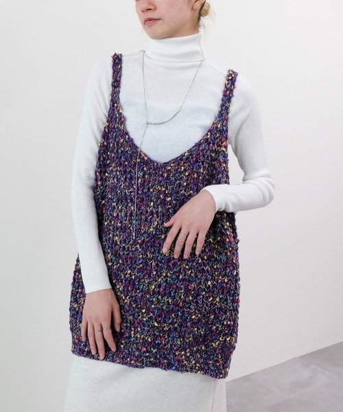 カラフルな糸の表情が華やかに映えるレイヤードスタイルを楽しむブークレニットベスト【Material】軽くて伸縮性のあるブークレニット素材を使用。【Design】色とりどりの糸をミックスしたブークレ編みが印象的なニットベスト。重ね着してももたつかず、上品なバランスに仕上がります。シンプルなインナーに重ねるだけで、コーディネートの主役になる1枚です。【Size】体のラインを拾いすぎないゆとりがあり、レイヤードしやすいサイズ感。パンツにもスカートにも合わせやすい丈感です。【Styling Point】シンプルなタートルネックやロンTの上に重ねたり、シャツの上に合わせて抜け感を出すのもおすすめです。デニム合わせでカジュアルに、スカートでフェミニンにも楽しめる、秋冬のレイヤードスタイルにぴったりのアイテムです。___________________________★商品のお気に入り登録 完売カラーの再入荷通知や、ラスト1点の通知、セールの通知も受け取ることができます。是非ブランドの"お気に入り登録"もご一緒にお願いいたします。 ※画像の商品は光の反射や角度により、実物と色味が異なる場合がございます。 また、表示のサイズ感と実物は若干異なる場合もございますので、予めご了承ください。 ※着用、お取り扱いの際は、商品についている品質表示とアテンションタグを必ずご確認ください。-DOLLUPOOPS | ドールアップウップス-【Add a little essence】ライフスタイルの多様化が進む現代変わり続ける今をとらえ、自分らしい感性を大切にする女性に向けて" より美しく" 毎日を" 彩る" ワードローブを。日常に調和しつつ、" 普通 " に少しだけエッセンスをたして、他にない特別な一品を提案します。-Instagram-公式インスタグラム【dollupoops.tevalt_official】※商品のサイズ感やご質問は【dollupoops.tevalt_official】のインスタアカウントDMにて承っております。お気軽にご相談くださいませ。