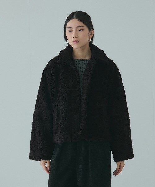 ●POINT 見た目にも温かく、もこもことした短めのボア素材使用しています。 インナーに着こんでもゆとりが出るように、肩回りにゆとりを持たせデザイン設計で、袖口に切替えを入れ、コクーンライクにすることで防寒性を高めたデザインに。 一番上のワンボタンをアクセントに、比翼仕立てにすることでミニマルな印象に仕上げています。 ワイドパンツやマキシスカートなどボリュームのあるボトムスとも合わせやすく、またレザーなどのトレンド素材を添えたモードな着こなしもおすすめです。 ---------------------------------- 透け感:なし 厚さ: 厚い 伸縮性:なし 裏地: あり ポケット: あり ---------------------------------- ---------------------------------------------------------------- 洗濯方法 家庭洗濯:家庭での洗濯禁止。 アイロン:アイロン仕上げ禁止。 ドライクリーニング:石油系溶剤による弱いドライクリーニングができる。 ---------------------------------------------------------------- ■モデル身長 165cm 着用サイズ M ※画像の商品はサンプルとなりますので実際の商品と仕様、加工、サイズが若干異なる場合がございます。 ※お客様のモニター環境により実際のお色と多少異なる場合がございます。 ※撮影状況や光の当たり具合により、色合いが異なって見える場合がございます。 ---------------------------------- ▼商品のお気に入り登録 ハートマークをクリックし、お好きなカラーを選んでお気に入りに登録 完売カラーの再入荷通知や、ラスト1点の通知、セールの通知も受け取ることができます。 ▼ブランドのお気に入り登録 新商品や再入荷等、いち早くブランドのお得な情報を受け取ることができます。 ----------------------------------