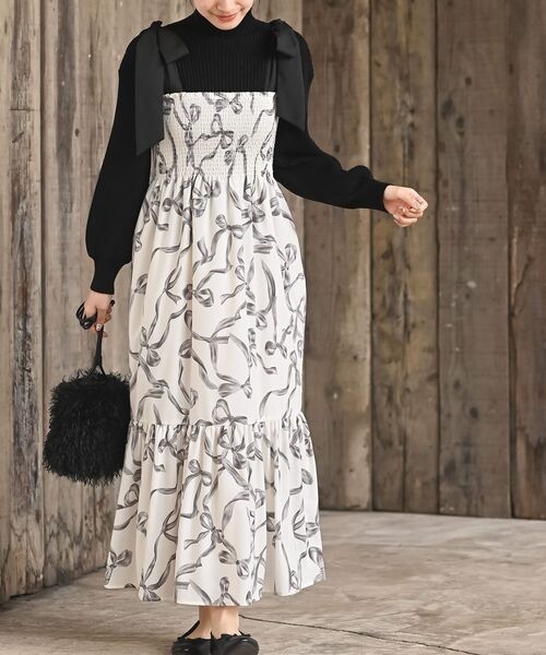 ★2025/AW NEW★リボンがいっぱいの大人ガーリーワンピリボンのプリントを全面にあしらった大人かわいいワンピース。胸元のシャーリングがトップスをコンパクトに見せてメリハリのあるシルエットを描きます。ギャザー切り替えの裾が足元に華やかさをプラス。肩紐のリボンで甘さを加えたガーリーな1枚です。裏地あり伸縮性なし薄手胸ゴム仕様リボン取り外し不可プリントムラ等みられる場合もございます生地の取り方でデザインに個体差が生じます洗濯:手洗い可▼お気に入り登録でお得がいっぱい▼~商品をお気に入り登録~再入荷・ラスト1点などの通知を受け取ることができます!~ブランドをお気に入り登録~《rps》の新商品・再入荷情報をいち早くお届け!