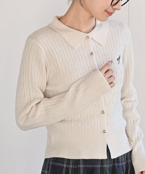 ★2025/AW NEW★ レトロ可愛い衿付きニットカーディガン 新鮮でいてどこか懐かしいポロニット。 すっきりとしたリブニットできちんと見えも叶えてくれます。 ケーブル編みが優しい印象に。 伸縮性もあるのでリラックスしてご着用いただけます。 ゴールドのボタンが女性らしいアクセントに。 さりげない配色ロゴ刺繍がポイントになった大人カジュアルな1枚です。 裏地なし 伸縮性あり 薄手 前開きボタン留め 編み加減や染めの具合でデザインやサイズ等異なる場合もございます 洗濯:手洗い可 ▼お気に入り登録でお得がいっぱい▼ ~商品をお気に入り登録~ 再入荷・ラスト1点などの通知を受け取ることができます! ~ブランドをお気に入り登録~ 《rps》の新商品・再入荷情報をいち早くお届け!