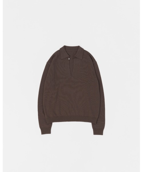 カシミヤの滑らかさとコットンの通気性を兼ね備え、深めのVと程よいリラックス感が魅力のスキッパーニット。9ゲージの2本取りで編み立てた後、縮絨を施すことで、美しい目面を保ちながら適度な膨らみと滑らかなタッチを実現しました。軽さと柔らかさを備え、幅広い季節に対応できる汎用性の高い一着です。リラックスしたシルエットながら、1枚で着用した際にもバランスよく見えるよう調整しています。前開きのVラインは編み続きで形成し、縫い代をなくすことでミニマルかつすっきりとした印象に。襟は編み地を3段階で切り替え、着用時にも形が崩れにくい立体的な表情を持たせました。さらに、首後ろから袖先にかけてアイレットを配し、シンプルな中に奥行きと動きを加えています。前開きのトップには貝ボタンを施し、ニットポロのように前を閉めた着こなしも楽しめます。素材にはコットン×カシミヤを採用。カシミヤが持つ滑らかさとしなやかな保温性に、コットンの通気性と扱いやすさが加わることで、快適性と上品な質感を両立しています。春・秋・冬と長い季節で着用でき、スタイリングの幅を広げてくれる素材です。【MATERIAL】COTTON95%CASHMERE5%【COLOR】BLACKGRAYBROWN【SIZE】01size : 着丈 63cm / 肩幅 50cm / 身幅 58cm / 袖丈 61cm02size : 着丈 66cm / 肩幅 52cm / 身幅 60cm / 袖丈 64cm【着用モデル】172cm 01size 着用182cm 02size着用【推奨着用サイズ】〜175cm 01size176cm〜 02size【品番】612-75500【備考】画像は製品サンプルの為、量産時に多少修正が入る場合がございます。また、お客様のパソコンや携帯等のディスプレイ上で表現された色と実物の色が異なる場合がございます。コロナ禍以降、国内外の生産・物流の遅延が発生しやすく、記載の納期より前後する場合がございます。あらかじめご了承頂きますようお願い申し上げます。【返品・交換について】ご注文後のキャンセル、返品、交換は原則お断りしております。お届けした商品に汚れ・破れ・縫製不良などの不具合がある場合は、商品到着後7日以内にE-mailまたはお問い合わせフォームよりご連絡ください。お客様からの返送品を確認後、交換もしくは修理の対応をいたします。