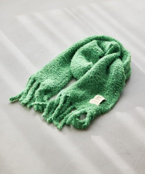 軽くて柔らかな肌触り秋冬コーデを彩るふわふわマフラーーーー【素材】羊毛とアクリル、ポリエステルを混紡した素材を使用。温かさと軽さ、柔らかな肌触りです。【デザイン】ふっくらとしたバルキーな質感と、単色ながら立体感のある編み地が特徴です。 両端には長めのフリンジが付いており、コーディネートに動きとアクセントを加えます。首元にほどよいボリュームを出せるため、防寒対策はもちろん、小顔効果も◎ーーー【スタイリング】 カジュアルなニットやシンプルなコートにプラスするだけで、秋冬らしい温かみのあるスタイルが完成します。シンプルなコーデのアクセントとしてもオススメです。
