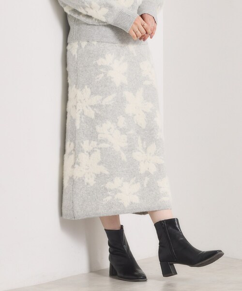 【デザイン】表面感あるジャカード編みが目を引くニットスカート。セミタイトシルエットなのでラインを拾いすぎず履きやすい。フェザーヤーンで表現したふわふわの花柄が可愛いジャカードニットスカート。ラインを絞り過ぎていないセミタイトシルエットなので、ヒップラインが気になりにくくなっています。表情の違う2種類の糸を使用する事で立体感が生まれ高見えポイントに。しっかりとした肉感のミドルゲージニットで温かみのある素材感。同素材のトップス【P93-14046】とセットアップでの着用も可能です。【素材】ジャカード編みのしっかりとした肉感のニット。【仕様】・ポケットなし・ウエスト総ゴム・裏地なし※照明の関係により、実際よりも色味が違って見える場合があります。また、パソコン・スマートフォンなどの環境により、若干製品と画像のカラーが異なる場合もございます。----------------------------------------★お気に入り登録がおすすめ★▽気になる商品はハートマークをクリック!・再入荷やセールの通知をお知らせ・お気に入り一覧からいつでもチェック▽ブランドのお気に入り登録も!・新商品やお得な情報をいち早くお知らせ----------------------------------------モデル情報:身長165cm B82 W60 H88 着用サイズ:00(フリーサイズ)店舗へのお問い合わせ商品番号:P93-64519●製品寸法:00(フリーサイズ):W68~78cm H88cm 総丈81cm備考: