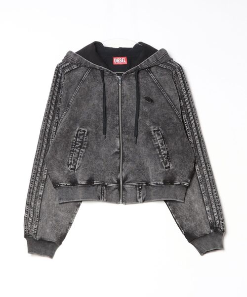 品番:A231190DCCJデニムライクなスウェット地で仕立てたリラックスフィットのジップアップパーカー「F-GYRY-CROP」。生地に染色やウォッシュ加工を施して、ユーズド感のある色合いを表現しました。肩から袖にかけてあしらった5本のバンドディテールがデザインポイント。フードのドローストリングの先にもオーバルDが落とし込まれており、細部までこだわった一枚となっています。