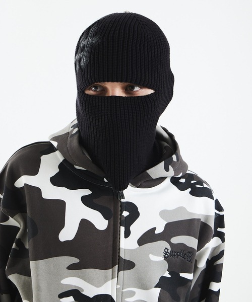 ビーニー|Cross Leather Patch Balaclava beanie|SUPPLIER