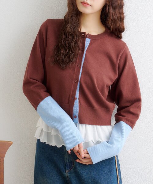 アーム部分の配色とチェックシャツデザインがかわいいカーディガン♪▼デザイン・肌触りと伸びのいいニットカーディガン♪・腕部分の配色部分は薄めのリブでゆとりのあるつくり・ボタン部分はチェックシャツで、前を開けても閉めても可愛いデザイン▼コーディネート・コンパクトな丈感で、ミニボトムを合わせて大人なカワイイコーデに・デニムなどのカジュアルアイテムとの相性も◎※洗濯、取り扱い洗濯:40℃程度 手洗いアイロン:120℃までタンブル乾燥:不可--------------------裏地:なし透け感:なし厚さ:やや厚め伸縮性:ややあり--------------------【商品のお気に入り登録】お気に入りアイテムの値下げ・再入荷・在庫1点などの通知を受け取ることができます。【ブランドのお気に入り登録】新商品や再入荷、セール、クーポン配布などお得な情報を受け取ることができます。※サイト上のカラー名と、お届け商品に記載されているカラー名が異なる場合がございます。※商品の色味は、撮影場所や光のあたり具合などにより色味が違って見える場合が御座います。また、お客様のお使いのPCのモニター環境などにより色味が違って見える場合が御座います。予めご了承の上ご注文下さい。※ご注文いただいた予約商品のお届け時期の確認は、注文履歴ページより行えます。