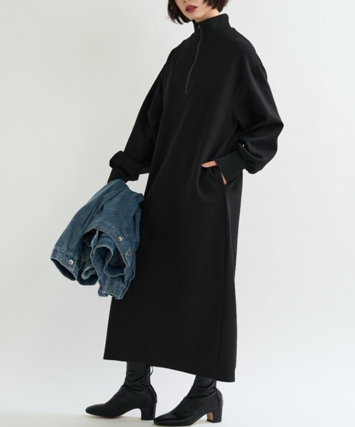 ハーフジップ ダンボールニット ロングワンピース【ハーフジップデザインが特徴のロングワンピース】■商品特徴ダンボールニット素材を使用した、ハーフジップ仕様のロングワンピース。ゆとりのあるシルエットと、シンプルなIラインデザインを組み合わせた一着です。■アイテム情報・カテゴリ:ワンピース / ロングワンピース・性別:レディース・シーズン:通年・シルエット:ゆったり・丈感:ロング丈・厚み:やや厚手・素材:ポリエステル・綿混・裏地:なし・伸縮性:あり・透け感:なし・光沢感:なし・生地の硬さ:普通・フロント仕様:ハーフジップ・ポケット:あり(サイドポケット2)・デザイン特徴:ハーフジップ付き、スタンドカラー■詳細説明ダンボールニット素材を使用した、ハーフジップデザインのロングワンピース。フロントのハーフジップは開閉可能で、着脱しやすい仕様です。ドロップショルダーとストンと落ちるIラインシルエットで、一枚でもレイヤードでも着用しやすいデザイン。背面にはスリットを入れ、足さばきにも配慮しています。■サイズ情報(cm)Mサイズ着丈:127身幅:58肩幅:52Lサイズ着丈:129身幅:60肩幅:54■スタイリング一枚での着用はもちろん、デニムジャケットやブルゾンを羽織ったカジュアルな着こなしもおすすめ。スニーカーやブーツなど、合わせるシューズを選ばず着用できます。■素材・混率本体:ポリエステル49% 綿46% ポリウレタン5%リブ部分:ポリエステル95% ポリウレタン5%■STAFF着用コメントゆとりのあるサイズ感で、締め付け感なく着用できました。ハーフジップで印象を変えられる点が使いやすいです◎(152cm・普通体型・Mサイズ着用)※着用感には個人差があります。■お気に入り登録★《お気に入り登録》でお得な情報がいっぱい★・「商品のお気に入り登録」で再入荷通知、セール通知を受け取ることができます・「ブランドのお気に入り登録」で新商品、再入荷情報を受け取ることができます※商品画像は撮影時の光や角度により、実物の色味と異なる場合がございます※撮影はサンプル品を使用しており、表示のサイズ感も実物とは若干異なる場合がございます※生産時期により色・素材・サイズ感など多少異なる場合がございます※他のキャンペーンにより、期間中に価格が変動する場合があります※セールは予告なく終了させていただく場合もあります