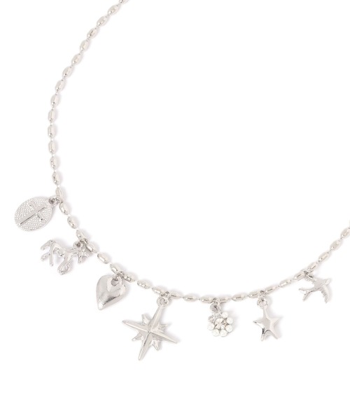 トレンドのミニチャームをMIX! 遊び心あふれるボールチェーンネックレス ボールチェーンに、クロス、ホース、ハート、星など、様々なミニチャームをミックスしたトレンド感のあるネックレス。 シンプルながらも存在感があり、カジュアルスタイルを華やかに演出します。 スウェットやニットに合わせるだけで、トレンド感のあるスタイリングが完成します。 ーーー ネックレス チャーム アクセサリー ーーー