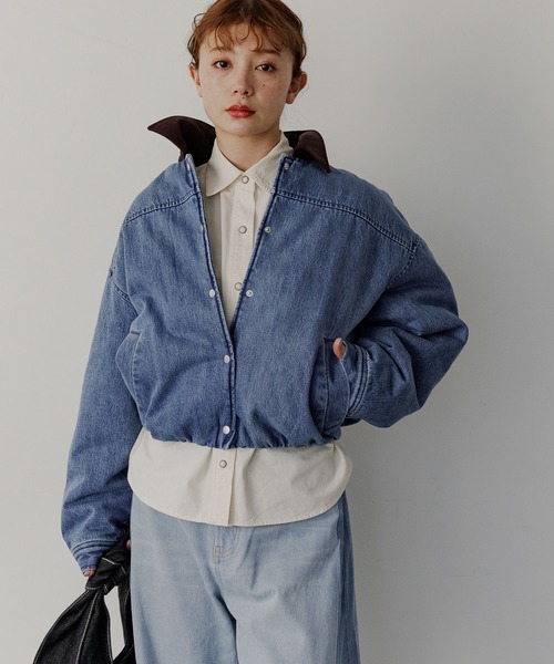 丸みのあるバルーンシルエットのショートブルゾンーーー★おすすめポイント★[1]ホワイト→柔らかく軽やかな風合い、インディゴブルー→ヴィンテージ風[2]裏地がボアで暖かさも◎[3]ショート丈[4]コーデュロイ、配色カラーの衿ーーー[fabric]オフホワイトは製品バイオを施し柔らかく軽やかな風合いが特徴。インディゴブルーはデニムに製品洗い加工を施してヴィンテージ風に仕上げた素材感。どちらも裏地がボアを使用しており、柔らかく、程よい厚みで暖かさも◎[design]裾にゴムを入れて丸みのあるシルエットに。衿はコーデュロイの配色カラーでシーズンらしさとこなれ感ある着こなしが叶うデザイン。身幅や袖はゆったりとしたサイズ感なので、中にニットやスウェットを着込んでも、もたつかず着心地も◎[styling]コンパクトな丈感なので、ハイウエストのワイドパンツやロングスカートとも好バランス。※屋外での撮影画像は光の加減で実際の商品より明るく見えたり、風合いが異なって見える場合がございます。 商品の色味はスタジオ撮影の画像を参考にして下さい。-------------------------------------≪お買い物をよりお楽しみいただくために≫◆商品のお気に入り登録(ハートマークをクリック)完売カラーの再入荷通知や、完売間近の通知、セールの通知も受けることができます。◆ブランドのお気に入り登録新商品や再入荷など、いち早くブランドのお得な情報を受け取ることができます。-------------------------------------