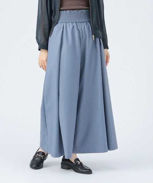 美シルエットでオンオフ活躍 ■デザイン ボリュームシルエットが雰囲気のあるコーデに仕上げてくれるワイドパンツ。ウエストは楽ちんなギャザーデザインを採用し、締め付け感が少なく快適な穿き心地を実現します。フロントに深めのタックを入れることで、腰周りはすっきりと見せつつ、裾に向かって美しく広がるフレアラインに。穿くだけでトレンド感とエレガントさを演出します。 ■コーディネート ウエストのギャザーデザインをアクセントに、ブラウスや薄手ニットをタックインするスタイルがおすすめ。パンツの美しいシルエットが際立ち、スタイルアップ効果を発揮します。スウェットやTシャツと合わせても、ハリ感のある素材のため、上品な大人カジュアルが完成します。 ■素材 程よいハリ感と滑らかさを併せ持つ合繊素材を使用。季節を問わずロングシーズン着用いただける優秀なひと品です。 ■ケア方法 洗濯可(詳細は商品についている洗濯表示タグをご覧ください。) ※光の当たり具合やパソコンなどの閲覧環境によって実際の色味と異なって見える場合がございます。予めご了承ください。 ※商品の色味は商品単体で撮影した画像をご参照ください。