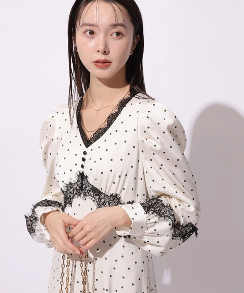 上品なサテンにドット柄を散りばめ、レースを贅沢にあしらったフェミニンワンピース。 ほんのり光沢のある素材が動くたびに柔らかく揺れ、大人らしい華やぎを演出します。 1枚で存在感があり、デイリーはもちろん特別なお出かけシーンにも活躍します。 ショートブーツやパンプスを合わせれば、季節を問わず楽しめるアイテムです。 【ご注意】 ※撮影照明の関係により、実際の商品と色味が異なって見える場合がございます。 また、パソコン・スマートフォンなどの環境により、製品と画像のカラーが異なる場合もございます。 予めご了承ください。 ※商品画像はサンプルのため、色味やサイズ等の仕様に変更がある場合がございますので、予めご了承ください。