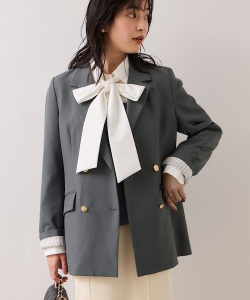 【2026 Spring】【26SS】 <美easyコンフォートシリーズ> ・美シルエット&セットアップ対応可能で、簡単にキレイにコーデが決まる ・シワになりにくく1日中美しい姿をキープ ・自宅でのお洗濯が可能!イージーケアが叶う ・サラリと涼し気な風合いで着心地の良い合繊素材を使用!UVケア付き <POINT> ・セレモニーシーンにも、普段使いにも使える ・セットアップで着れるシリーズあり ・金ボタン使い ・さりげない裏地ストライプ 【デザイン・シルエット】 毎日を快適にしてくれる、カジュアルにも、キレイ目にも合わせやすい素材感。 VISで人気の着回し抜群の機能性と美シルエットを兼ね備えたWブレストテーラードジャケットです。きちんと感のある肩幅と着丈のバランス、ゴールド釦が女らしい一着。 裏地ストライプ使いで脱いだ時や袖を捲ってもアクセントに◎ ※LサイズはWEB限定。 ※前回好評だった美easyコンフォート金ボタンジャケット(品番:BVV35010)と同型。 【前回の美easyコンフォート金ボタンジャケット(品番:BVV35010)との違い】 ・新色グレー (07)が登場。 【素材】 シワになりにくい素材を使用しており、快適な着心地としなやかなで上品なツイル生地を使用しています。 ご自宅でのお洗濯が可能。 【カラー】 グレー(チャコール)、ベージュ(ライトベージュ)、ライトグリーン、ネイビー(濃ネイビー)の3色展開。 正面、袖口にはゴールドボタン仕様。裏地はストライプ柄。 【おすすめのスタイリング】 セレモニーシーン:同シリーズのパンツ(品番:BVS36010)やビスチェブラウス(品番:BVH36010)の合わせがおすすめです。 3点セットにして頂くと色々なシーンに着回しが利きます。ボトムをデニムに変更しても素敵に決まります。 ----------------------------- 裏地:あり 光沢感:なし 透け感:なし 伸縮性:なし ウエスト:ゴムなし ポケット:あり ボタン:あり(開閉可) 生地の厚さ:普通 その他仕様:後ろスリットあり 季節:春、秋 ----------------------------- 【モデル着用サイズ】 身長:161cm 着用サイズ:M ※LサイズはWEB店舗限定のお取り扱いとなります。実店舗での販売はしておりません。 ※画像の商品はサンプルです。 実際の商品と仕様、加工、サイズが若干異なる場合がございます。 ※画像によっては実際の色味と異なる場合があります。正しい色味は生地アップ画像をご確認ください。