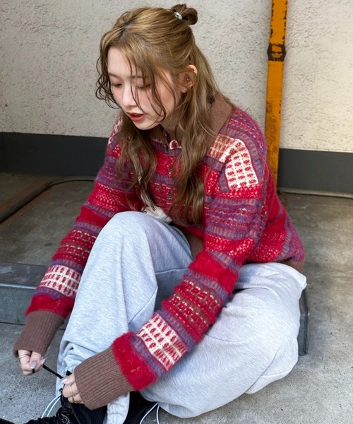 【ジャガードポロ衿ニット】USED風の柄と立体的な編地がポイントのポロ衿ニットが登場!フェザーヤーンをMIXしているので、柄の立体感がさらにアップ◎見た目だけでなく、ソフトでチクチクしない素材感だから着心地も抜群。短めの着丈でタックアウトしてもバランス良く決まるのが嬉しいポイントです♪カラーはUSED感のあるこっくりカラーで秋冬コーデにぴったり。1枚で主役になるニットなので、デニムやスカート合わせでストリート寄りにも、カジュアルMIXスタイルにもおすすめです!■素材・透け感:なし・裏地:なし・光沢感:なし※生地寄りの画像が実際の色味と近いものとなります。※ご覧のモニター環境や撮影環境により実際のカラーと異なる場合がございますので画像をご参照の上、ご了承頂けますようお願い致します。