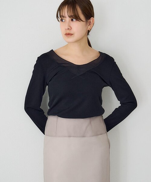 着回し力とお洒落見えを同時に実現できるカットソー ジャケットやカーディガンの中に着る"普通"じゃないカットソーが欲しくて作りました。 襟元をシアー感のある布帛ドッキングにしインナー使いでもポイントになってくれます。 そしてどこか女っぽさを感じるデザインです。 身体にフィットするサイズ感なのが、どんなアウターにも相性抜群で お手持ちのアイテムにも馴染んでくれます。 - - - - - - - - - - - - - - - 透け感:あり 裏地:なし 伸縮性:あり 光沢感:なし 生地の厚さ:薄い 取り扱い:手洗い可 - - - - - - - - - - - - - - - 【注意事項】 ※撮影環境により、光の当たり具合で色味が違って見える場合があります。あらかじめご了承下さい。 ※画像はサンプルの為、実際にお届けする商品と仕様が異なる場合がございます。 ※裏返してネットに入れて洗ってください。 ※色物と白物を一緒に洗濯しないでください。 ※長時間濡れたまま置かないでください。 ※形を整えてから干して下さい。 ※タンブル乾燥はしないでください。 ※アイロンは形を整える程度に軽くかけて下さい。 ※この製品の生地は表面が引っ掛かりやすくなている為、着用時や着脱時に指輪やバッグ等身の回り品との引っ掛かりにご注意ください。 ※洗濯やクリーニングの際は裏返して処理するかネットをご使用下さい。 ■「商品のお気に入り登録」で ハートマークをクリックし、お好きなカラーを選んでお気に入りに登録すると 入荷情報や残り1点の通知、完売カラーの再入荷、セール情報などを受け取ることができます。 登録して頂いた商品だけが対象となる、あなただけのタイムセールが開催されることも! ■「ブランドのお気に入り登録」で 新商品や再入荷など、いち早くSHENERYのお得な情報を 受け取ることができますので、ご登録をおすすめします!