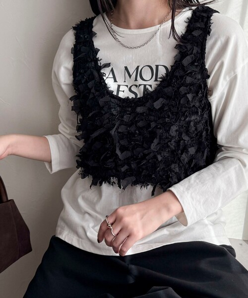 "◇fredy emue◇【2026 SS】大人可愛いレイヤードスタイルが叶う!リボンテープビスチェ●point・リボンテープが目を惹く、華やぎのあるビスチェトップス・シャツやカットソーに重ねるだけで、大人の甘さが漂うレイヤードスタイルに・コンパクトながらレイヤードしやすいサイズ感でバランスよく着こなせます・優しい着心地で伸縮性があるので窮屈感なく、身体にフィットします・いつものコーデをさりげなくアップデートしてくれる着映えアイテムです透け感:ややあり裏地:なし伸縮性:ややあり光沢感:なし洗濯:手洗い可◇商品のお気に入り登録◇気になる商品は、お気に入り登録がオススメです!クーポン情報、入荷情報が、通知されるようになります。※お手入れの際は、商品についている品質表示タグの取扱い表示をご確認ください。●お取扱い上のご注意●*商品を長くご愛用していただきたいため、アテンションタグがある場合は必ずご確認の上、着用又はお取り扱い下さい。*画像の商品はサンプルとなりますので実際の商品と仕様(主にファスナー・釦等の付属品)、加工、サイズが若干異なる場合がございます。*店頭及び屋外での撮影画像は、光の当たり具合で色味が違って見える場合があります。商品の色味は、スタジオ撮影の画像をご参照下さい。*商品画像に関しては出来る限り忠実に表示出来るよう努めておりますが、お客様がご利用のモニターの設定及び特性により、実際の商品と比較し色味に若干の誤差が生じる場合があります。*製品洗い加工の商品は、多少の歪み、シワなどが見られたり、風合いやサイズ等が1枚1枚異なります。汗や雨等で濡れた時や、摩擦により色落ちし、他の衣料を汚すことがありますので(特に濃色のもの)ご注意ください。※サンプルでの採寸のため、サイズ表はあくまで目安となります。予めご了承ください。"
