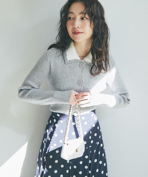 顔周りを明るく見せる、華やぎシャギー襟ニット ●デザイン 襟元にあしらわれたふわふわのシャギーが、顔周りを明るく見せてくれるデザイン。 シンプルながら存在感があり、上品さと華やかさをプラスします。 ボディラインに優しくフィットするリブニット素材で、女性らしいシルエットを演出。 フロントボタンを留めてトップスとして着るのはもちろん、 Tシャツやカットソーに羽織ってカーディガンとしても活躍する一枚です。 ●ポイント ・トレンドの襟付きデザイン ・ふわふわシャギーで顔周り華やか見え ・着回し力抜群 ・手洗い可能 ●おすすめのコーディネート きれいめボトムと合わせれば女性らしさが引き立つスタイリングに。 デニム合わせで甘さを程よく抑えた大人カジュアルもおすすめです。 スカートと合わせれば華やぎが増し、デートやお出かけにも◎ 洗濯方法:手洗い 透け感:なし 裏地:なし 生地の厚さ:普通 伸縮性:あり #cate001