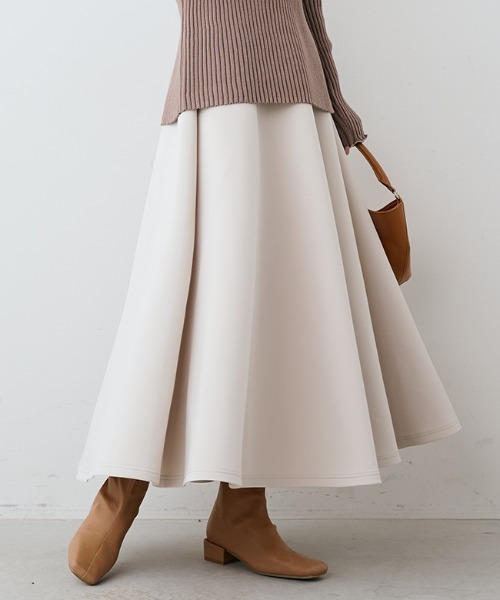 華やぐボリューム! 全方位きれい見えフレアー しっかり張り感のある素材の特性を生かした、構築的なシルエットが美しいフレアースカート。 腰から脚までまるっとカバーできるから、タイツやレギンスを重ねても着ぶくれ知らず。 伸びやかでしわになりにくいカットソーで、着崩れの心配なくオンオフ活躍。 ◆ボトムス対応サイズ◆ S/SPサイズ相当:ウエスト58~64cm ヒップ82~90cm M/MPサイズ相当:ウエスト64~70cm ヒップ87~95cm Lサイズ相当:ウエスト69~77cm ヒップ92~100cm LLサイズ相当:ウエスト77~85cm ヒップ97~105cm 3Lサイズ相当:ウエスト85~93cm ヒップ102~110cm 4Lサイズ相当:ウエスト93~101cm ヒップ107~115cm ※フェリシモの商品には、紐などでくくられている紙タグは付属しておりません。