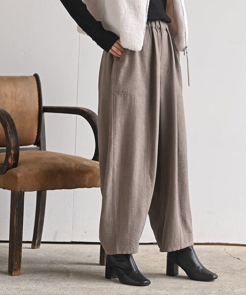 ★2025/AW NEW★緩やかにカーブを描くリラックスワイドパンツ立体感のあるコーデに仕上がるコクーンシルエットパンツ。丸みのあるラインが体型カバーしながらおしゃれ見えを叶えてくれるアイテムです。落ち感のあるピーチスキンが女性らしい印象に。総ゴムのウエストで着脱もスムーズです。裏地がなく、薄手の素材でロングシーズンお楽しみいただけます。裏地なし伸縮性なし薄手ウエスト総ゴムサイドポケットあり織キズやだま等みられる場合もございます洗濯:洗濯機使用可▼お気に入り登録でお得がいっぱい▼~商品をお気に入り登録~再入荷・ラスト1点などの通知を受け取ることができます!~ブランドをお気に入り登録~《rps》の新商品・再入荷情報をいち早くお届け!