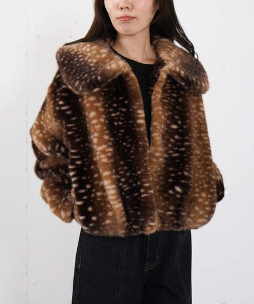 ■主役のファーコートはバンビ柄で人と差をつける■【デザイン】・今季トレンドのファーコートは襟付きタイプで着るのが◎・大きめの襟は小顔効果抜群・首元には抜けがあるので首が詰まったデザインが苦手な方にもおすすめ・バランスよくスタイリング出来るショート丈裾が少し内側に入っているのでよりスッキリ見えます。・前は4か所のホックで留めて着用出来ます・裏地付きなので風を通さず真冬もあたたかく過ごせます!・バンビ柄と無地のアソートはイメージの違う2種類でガラッと雰囲気が変わります【素材感】・若干毛足長めのフェイクファー・毛並みの肌当たりは柔らかくずっと触りたくなるさわり心地です・裏地はさらっとしたポリエステル生地で突っかかりなくインナーを着て頂けますーーーーーーーーーーーーーーー透け感:なし裏地:あり伸縮性:なし光沢感:微光沢生地厚さ:普通洗濯方法:クリーニング推奨※詳しいお手入れ方法は商品についているタグをご覧くださいーーーーーーーーーーーーーーー※ご利用のモニター環境により、実際の色味と多少異なる場合がございます。【スタイリング】・衿がポイントなので前を閉めて着るのがおすすめ・トレンドのバルーンスカートにロングブーツを合わせればホリデーコーデの完成・カジュアル派さんはワイドデニムでラフに着こなすのがおすすめ… information … 欲しいitemをお気に入り登録(♡マークをclick) ・お買いのがし対策…完売itemの再入荷やラスト1点の情報をお知らせ ・欲しいitemをお得にget…pricedownになったらいち早くお知らせ ・スムーズ検索…ZOZOのお気に入りアイテムページで簡単checkできるから、再検索不要♪