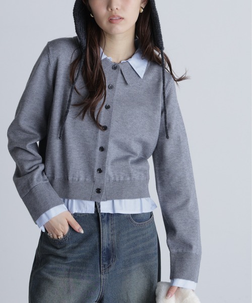 〔fabric&design〕ご好評いただいているシャツフェイクレイヤードポロカーディガン(131-5270221)の糸変えバージョン。ふっくらと前回よりもウォーム感のある糸に変えています。コンパクトシャツをレイヤードしたようなデザインのポロニットカーディガン。衿・カフス・裾部分から布帛をはぎ合せトレンドな着こなしが1枚で叶います。第一ボタンと裾のボタンを開けて抜け感を出しても◎オフだけシャツ部分のサックスカラーを少し薄くしてなじむカラーにしています。〔styling〕1枚でレイヤードが完成されているのでメンズライクにデニムやスラックスに合わせたスタイリングがおすすめ!ミニスカートでプレッピーな着こなしも今年らしいです◎商品特性■透け感:なし■生地の厚さ:普通■裏地:なし■伸縮性:あり■光沢:なし■シルエット:スタンダード---------------------------------------------------◆商品のお気に入り登録◆お気に入りアイテムの値下げ・再入荷・在庫1点などの通知を受け取ることができます。◆ブランドのお気に入り登録◆新商品や再入荷、セール、クーポン配布などお得な情報を受け取ることができます。---------------------------------------------------