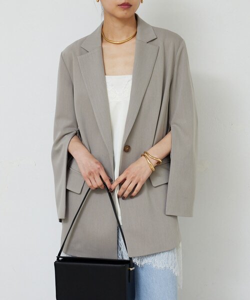 \抜け感をプラスする2wayデザイン/大人のためのオープンスリーブジャケット●オープンスリーブとベーシックな着こなしを楽しめる2wayデザイン。●袖ファスナーを開ければ抜け感あるスタイルに。●気になる部分もカバーできるやや長めの着丈。●ON/OFF問わず、幅広いシーンで活躍するアイテム。■洗濯:手洗い可■透け感:なし■裏地:あり※画像の商品はサンプルです。実際の商品と仕様、加工などが若干異なる場合があります。また、生産過程上の都合により、洗濯表記や混率、サイズスペック等が多少変更になる可能性がございます。予めご了承ください。※トップの画像は、光の具合で色味が違って見える場合があります。◆気になる商品は「お気に入り」登録を◆ハートマークをクリックし、お好きなカラーを選んでお気に入りに登録すると入荷情報や残り1点の通知、完売カラーの再入荷、セール情報などを受け取ることができます。