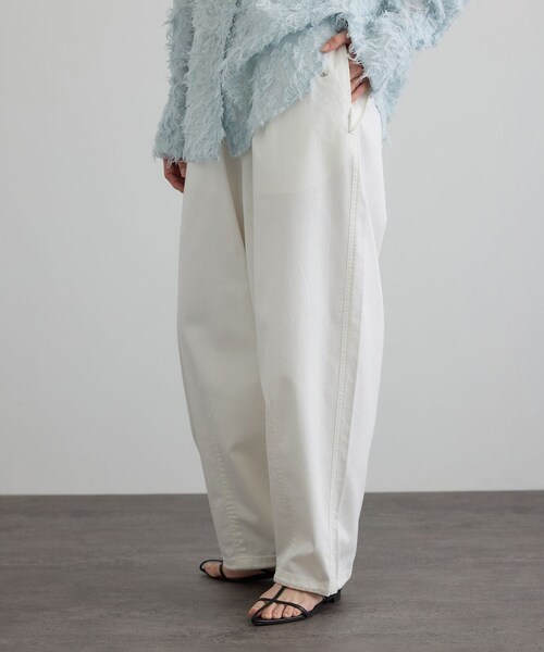 ■デザイン/シルエット 膝下に入れたダーツで立体感を出し、スタイルアップが叶うテーパードシルエットのミリタリーパンツ。 裾に向かって細くなるラインが大人のカジュアルに洗練感をプラスします。 ウエストはドロスト&ゴム仕様で快適なフィット感に調整可能。 裾内側のアジャスターでシルエット変化も楽しめます。 フロントはファスナーあき、ウエストタック入りで体型カバー力も◎ サイド&バックポケット付きでデイリーに使いやすい一本です。 ■素材 6.3ozのブロークンツイルを使用し、ヴィンテージ感漂う風合いと高い耐久性を実現。 ねじれにくく長く愛用できるのが魅力です。柔らかくごわつきのない肌触りで、軽さも兼ね備えた快適素材。 ストレッチ性もあり、デイリーにストレスなく着用できます。 オーバーダイ加工によるこなれた雰囲気もポイント。 軽やかなオフ、上品なベージュ、ミリタリー感のあるカーキの3色展開。 ■コーディネート シアーやチュールを合わせた抜け感スタイルや、甘めブラウスとのMIXコーデで大人のこなれ感を演出。 ノースリーブやタンクなどコンパクトトップスとも相性抜群。 ジャケットやシャツできれいめにも決まり、幅広いシーンで活躍します。 一本あるだけで着回し力がぐっと広がる、大人におすすめのカーゴパンツです。 ■モデル身長:165cm 着用サイズ:F ----------------------------- 裏地:なし 光沢感:なし 透け感:なし ポケット:あり 伸縮性:なし 生地の厚さ:普通 -----------------------------