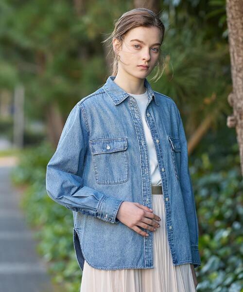【キレイ見えするヴィンテージ感。使いまわし力◎のデニムシャツ】 ●本格的な加工を施した一枚 ●軽い着心地でスタイリングに取り入れやすい ●着回し力が高く一枚あるだけで便利 ライトオンスデニムに洗いをかけ、ヴィンテージのような雰囲気に仕上げたオーバーサイズシャツ。 本格的なヴィンテージ感を演出するために細部まで加工にこだわった一枚です。 衿は少し抜け感が出やすいようにパターンを調整しているので、軽く羽織るだけでこなれたスタイリングが完成します。 ワンポイント刺繍が魅力。 Tシャツやタンクトップの上に合わせる羽織りシャツとしてはもちろん、寒い時期にはタートルニットをインに合わせるなど長いシーズン着ていただけます。 【素材】 素材は柔らかく肌触りの良いデニムを使用しており、軽く、トップスとして着用してもレイヤードとして羽織るだけでもこなれた印象になります。 ※照明の関係により、実際よりも色味が違って見える場合があります。また、パソコン・スマートフォンなどの環境により、若干製品と画像のカラーが異なる場合もございます。 店舗へのお問い合わせ商品番号:085-85001 ●製品寸法: 34(SS):着丈68cm B117cm 裄丈78cm 肩幅43cm 36(S):着丈70cm B120cm 裄丈79cm 肩幅44cm 38(M):着丈71cm B123cm 裄丈81cm 肩幅45cm 備考: