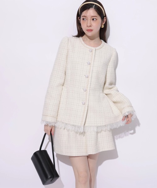 脚をすらりと長く見せるハイウエスト設計で、スタイルアップ効果も抜群のショートパンツ。 ツィードならではの立体的な表情が、シンプルトップスを合わせるだけでコーデを華やかに仕上げてくれます。 ニットやブラウスなど品よくまとめるのはもちろん、ジャケット合わせでセットアップ風にも。 タイツやロングブーツと相性が良く、季節問わず楽しめる着回し力の高い一枚です。 【ご注意】 ※撮影照明の関係により、実際の商品と色味が異なって見える場合がございます。 また、パソコン・スマートフォンなどの環境により、製品と画像のカラーが異なる場合もございます。 予めご了承ください。 ※商品画像はサンプルのため、色味やサイズ等の仕様に変更がある場合がございますので、予めご了承ください。