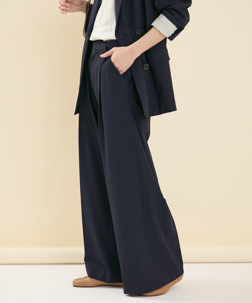 JOURNAL STANDARDハンサムでな印象のワイドスラックスパンツ。フロントにタックを入れ、しっかりと幅のあるワイドシルエットに仕上げたモード感あふれるかっこいいワイドスラックスになっています。シワになりづらく、しなやかな素材でストレッチも効いていて、動きやすくて着回し力の高い1本。トップスをインしてすっきり着こなして、パンツのシルエットをうまく強調するのもおすすめです。同シリーズのジャケットがあるのでセットアップとしても◎オケージョンにもおすすめです。※2WAYストレッチとは、生地が縦方向と横方向の両方に伸びる(伸縮する)素材※同シリーズで下記品番もございます。2WAYトロジャケット(品番:26010400500010)2WAYトロスリットスカート(品番:26060400502010)**********************透け感:なし裏地:なし伸縮性:あり光沢感:なし生地の厚さ:普通**********************【スタッフ着用コメント】《スタッフO》年齢:30代前半/身長:162cm/体型:普通/普段サイズ:M/着用サイズ:38サイズ感:ゆったりしています。36サイズでも穿けました素材感:落ち感のあるクリーンな素材着心地:ストレッチが効いているので動きやすく穿きやすいです。※あくまでも個人の感想です**********************※取り扱いについては、商品についている品質表示でご確認ください。※照明の関係により、実際よりも色味が違って見える場合があります。またパソコン・スマートフォンなどの環境により、若干製品と画像のカラーが異なる場合もございます。※商品の色味は、商品アップ画像をご参照ください。本体:ドライクリーニング