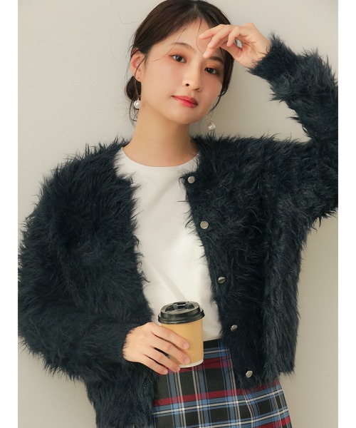 ZOZO限定アイテム【美人見えニット】●商品情報ふんわりとした質感がコーデにほどよい表情を添え、軽く羽織るだけでデイリーに使いやすいカーディガン。スウェットやデニムと合わせても馴染みやすく、大人カジュアルな着こなしに自然とまとまります。ラフに着られるシルエットで合わせるインナーを選ばず、普段のスタイリングに変化をつけたい時にも活躍します。●ポイント・華やかな印象のシャギーニット・前後2WAY可能で着回し力抜群・すっきりと着られる着丈で、ボトムスとのバランスがとりやすいのもポイントです●コーディネート・ワンピースやブラウスに羽織って、上品で大人可愛いスタイリングに。・カーディガンの上部のボタンを開けて、インナーをポイントにした着こなしもおすすめです。・後ろボタンで着用しデニムと合わせれば、カジュアルガーリーなコーデに。
