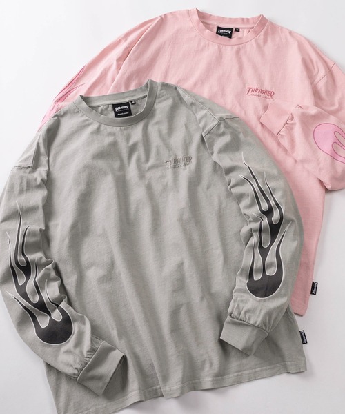 ■【THRASHER/スラッシャー】ピグメント加工 ワンポイント刺繍 袖フレイム バックプリント ロングスリーブTシャツ■detail&fabric加工感のあるピグメント加工が施されたロンT。袖プリントは存在感のあるフレイムデザインで、バックプリントはストリート感のあるかすれプリント。フロントはワンポイントのロゴ刺繍デザインなので、1枚で着るのはもちろん、シャツやパーカーなどのインナーにも使いやすいデザイン。女性の方にもおススメのユニセックスアイテム。■coordinate&pointロンTをインナーにデニムジャケット、ナイロンジャケット、トラックジャケット、ダウンジャケット、レザージャケット、MA-1、N-2Bなどのアウターなどをあわせたり、ボトムスにルーズデニムやワイドパンツ、カーブパンツなどを合わせ、トップスをコンパクトにまとめて、ボトムがルーズなコーデもおすすめです。フレアパンツ、ワッフルT、ヘンリーネック、ダメージアイテムとの組み合わせで、古着MIXや韓国ファッションの着こなしや、カーゴパンツ、ペインターパンツ、オーバーオールなどとのワークテイストアイテムとの組み合わせも良いです。これからの季節、靴はスニーカーはもちろん、ワークブーツやレザーシューズなどとのの相性も◎小物にナップサック、サコッシュ、ショルダーバック、トートバッグ、バケットハット、ワークキャップなどと合わせればストリート感、アクセサリーのネックレス、リング、ピアスなどを合わせてコーデすると大人カジュアル感など、小物により多くの演出もできます。メンズ・レディス問わず着用できるユニセックスアイテム、友達とのペアコーデやカップルコーデに使ったり、大切な人へのプレゼントとしてもおススメのアイテムです。■brand history【THRASHER/スラッシャー】スケーターなら1度は憧れるブランドで1981年にスラッシャー・マガジンから生まれたブランド。サンフランシスコでEric Swenson、Fausto Vitelloが創刊して言わずと知れたUSAを代表するスケートボード専門誌THRASHER MAGAZINE。雑誌の刊行だけに留まらずそのブランドとしての地位は世界中の若者たちの間で確固たる物となっている。スケートボードだけの枠にとらわれずウェア、アートワーク、ロック、他のスライドスポーツ界に置いてもその独自の世界観はある種その手のサブカルチャーの代名詞にさえなっていると言っても過言では無い。<お買い物をお楽しみ頂くために>■購入ボタン横のハートマークをクリック!完売カラーの再入荷通知、ラスト1点の通知、セールの通知も受け取ることができます(商品のお気に入り登録)■ショップのトップページにあるハートマーク【お気に入りショップに追加】をクリック!新商品の入荷や再入荷等、いち早くブランドのお得な情報を受け取ることができます(ブランドのお気に入り登録)【Slash Date/スラッシュデイト】日々のコーデにアクセントを!カジュアルストリートブランドを中心にユニセックスで存在感抜群なアイテムをトータルコーデで提案するセレクトショップです。