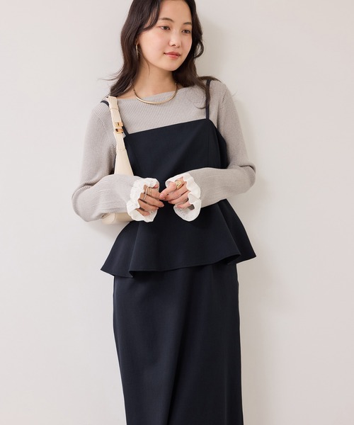 セレモニー・お仕事・お出かけなどどんなシーンにも活躍!美シルエットが叶う、ペプラム切替キャミワンピ【2026 Spring】【26SS】<POINT>・美シルエット&セットアップ対応可能で、簡単にキレイにコーデが決まる・自宅でのお洗濯が可能でデイリーに使いやすい・腰位置を高く見せるペプラム切替でさりげなくスタイルアップ・肩ストラップは調整可能で、インナーに合わせて着丈アレンジ◎・きちんと見えする素材感と、重ね着しやすいゆったりサイズでオンオフ対応【デザイン・シルエット】身体のラインを拾いすぎないIラインシルエットに、ペプラム切替を組み合わせた上品なデザイン。胸下の切替位置が自然とスタイルをよく見せてくれ、きちんと感のある印象に仕上がります。インナーを変えるだけで通勤からお出かけまで幅広いシーンに対応でき、華奢なストラップが大人の抜け感をプラス。タートルやシアートップスを合わせるだけで、レイヤードスタイルが簡単に完成します。メリハリのあるシルエットながら、締め付け感のない快適な着心地も魅力。ストレート・ウェーブ・ナチュラルのどの骨格タイプにも取り入れやすい設計です。【素材】シワになりにくい素材を使用しており、快適な着心地としなやかなで上品なツイル生地を使用しています。ご自宅でのお洗濯(マシンウォッシャブル)が可能。【カラー】グレー(チャコール)、ベージュ(ライトベージュ)、ネイビー(濃ネイビー)の3色展開。【おすすめスタイリング】タートルニットやブラウスをインすれば、通勤にも馴染むきれいめレイヤードが即完成。ジャケットやアウターを羽織るだけで、きちんと感のあるオフィススタイルにもアップデートできます。カーディガンをラフに羽織っても相性がよく、季節を問わずデイリーに使える万能さが魅力です。-----------------------------裏地:なし光沢感:なし透け感:ベージュ(27)ややあり伸縮性:なしウエスト:後ろ一部ゴムポケット:ありボタン:なし生地の厚さ:普通肩紐:調整可季節:春、秋-----------------------------【モデル着用サイズ】ベージュ(27)着用モデル 身長:161cm 着用サイズ:Fグレー(07)ネイビー(40)着用モデル 身長:160cm 着用サイズ:F※こちらの商品は、WEB店舗と一部店舗限定のお取り扱いとなります。※画像の商品はサンプルです。 実際の商品と仕様、加工、サイズが若干異なる場合がございます。※画像によっては実際の色味と異なる場合があります。正しい色味は生地アップ画像をご確認ください。
