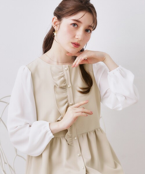 ▼▼気になるアイテムはハートマークをクリック▼▼ぜひお気に入り登録してチェックしてください♪フロント部分のフリルとパール調ボタンが特徴的なドッキングペプラムブラウス~POINT~ふんわりと広がるペプラムシルエットがウエスト周りをカバーし上品にキレイ見えします◎【素材】本体はシワになりにくくキレイな落ち感が魅力のポリエステル混素材、袖部分には軽やかなシフォン素材を使用。※マシンウォッシャブル機能付き※照明の関係により、実際よりも色味が違って見える場合があります。また、パソコン・スマートフォンなどの環境により、若干製品と画像のカラーが異なる場合もございます。【スタッフコメント】shino(164 )フリル使いとペプラムシルエットが、女性らしいメリハリを演出。ウエスト位置を高く見せてくれるため、自然なスタイルアップが叶います。シンプルなボトムと合わせるだけで、華やかなコーディネートが完成します。【26SS NEW ARRIVAL】【26SS NEW COLLECTION】モデル情報:身長163cm B81 W56 H82 着用サイズ:38(M)店舗へのお問い合わせ商品番号:508-85039●製品寸法:36(S):着丈58cm B89cm 袖丈57cm 肩幅33cm38(M):着丈60cm B92cm 袖丈58cm 肩幅34cm40(L):着丈62cm B95cm 袖丈59cm 肩幅35cm42(LL):着丈63cm B98cm 袖丈60cm 肩幅36cm備考: