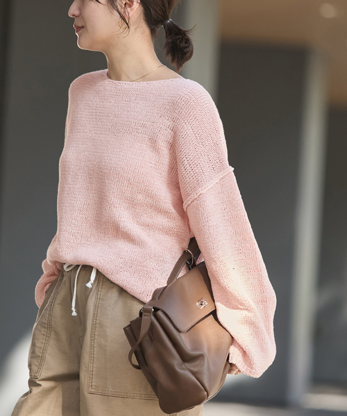 JOURNAL STANDARDご好評につき、テープヤーンDROPプルオーバーが新色が加わって追加登場!※旧品番:25080400306010、25080400306110、25080400306210の追加商品です。※ブラックA、ピンクの追加です。ホワイトは新色です。※若干の仕様変更がある場合もございます。※旧品番はすでに店舗に入荷しております。在庫数等は店舗にお問い合わせ下さいませ。コットンで表情感あるテープヤーンのオーバーサイズニットプルオーバー。アウトシーム仕様がポイントで大人カジュアルなムードのあるニット。少しオーバーサイズでやや広めなボートネックの開きがニュアンス感を演出。1枚で様になるスプリングニットです。**********************透け感:あり裏地:なし伸縮性:あり光沢感:なし生地の厚さ:普通**********************【スタッフ着用コメント】《スタッフO》年齢:30代前半/身長:160cm/体型:普通/普段サイズ:M/着用サイズ:FREEサイズ感:程よくゆったりしています素材感:程よい肉感でコートの中にも着やすいコットンニット着心地:楽な着心地です※あくまでも個人の感想です。**********************※取り扱いについては、商品についている品質表示でご確認ください。※店頭及び屋外での撮影画像は、光の当たり具合で色味が違って見える場合があります。商品の色味はスタジオ撮影の画像をご参照下さい。本体:手洗い可能