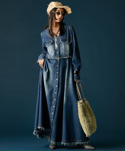 主役級デニムで差をつける、トレンド感満載のデニムマキシワンピース。 ■デザイン 裾のカットオフフリンジ加工が ヴィンテージライクな雰囲気を醸し出す ロング丈のデニムワンピース。 胸元の大きなポケットや 前開きボタンのデザインが、 カジュアルなムードを盛り上げます。 ゆったりとしたシルエットで リラックス感がありながらも、 マキシ丈が大人っぽい印象を与えます。 ■素材 程良い厚みの綿100%のデニム素材を使用。 ■おすすめのスタイリング 1枚ワンピースとして バケットハットやスニーカーと合わせた、 ストリート感のあるカジュアルスタイル。 上からスウェットを合わせたり、 パンツを合わせてフロントボタンをウエストまで開けた レイヤードスタイルもオススメです。 着方を変えられるので ロングシーズン着回しできるアイテムです。 <仕様> 前・袖口ボタン開き 製品洗いの為、色の出方・仕上がりサイズが多少異なる場合があります。 透け感:なし 伸縮性:なし 生地の厚み:普通 光沢感:なし ポケット:あり(両脇・胸ポケット2つ) 季節:春・秋向き シルエット:普通 <洗濯方法> 洗濯機OK ネット使用 <対応サイズ> M :バスト:79~90/ウエスト:64~69/ヒップ:91~95 L :バスト:86~94/ウエスト:69~77/ヒップ:92~100 LL :バスト:93~101/ウエスト:77~85/ヒップ:97~105 3L :バスト:100~108/ウエスト:85~93/ヒップ:102~110 4L :バスト:107~115/ウエスト:93~101/ヒップ:107~115 5L :バスト:114~122/ウエスト:101~109/ヒップ:112~120 ※こちらはヌードサイズです。 ※平置きのアイテムサイズとは異なる計測方法となりますのでご了承ください。 #ゆったり#体型カバー#二の腕カバー #大きいサイズ#プラスサイズ#大きいサイズレディース #M#L#LL#3L#4L#5L 【気になる商品はお気に入り登録がおすすめ】 ▼商品のお気に入り登録 完売カラーの再入荷通知や、ラスト1点の通知、セールの通知などお得な情報が受け取れます。 ▼ブランドのお気に入り登録 新商品や再入荷など、ブランドのお得な情報をいち早く受け取ることができます。 【GEVS.(ジェイヴィス)】 ヴィンテージSHOPのdead stockの中から宝物を探すようなワクワク感を。 GEVS.は一目惚れするアイテムと気分が上がるトレンドのスタイリングがいっぱいの空間を提供します。 ▼公式Instagram @gevs._officialsite