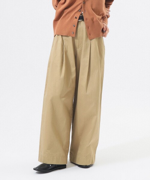 大注目の新型チノ!■デザイン〈BEAMS BOY(ビームスボーイ)〉の定番であるチノパンを、スタイリングの視点から新たに再構築。トラッドな2タックチノをベースに、シルエットは思い切ってワイドに設定し、シューズにかかる重心の低いバランスに仕上げました。トラッドを軸にしながらも、新しいバランスに挑戦した1本です。■コーディネートジャケットやシャツを合わせたトラッドスタイルの“外し”としてはもちろん、プリントTなどとラフに合わせるだけでもサマになります。合わせるアイテム次第で幅広い表情が楽しめます。■サイズ3サイズ展開。ワイドシルエットながら落ち感があり、穿くだけでスタイリングの主役になるバランス。存在感がありつつ、日常使いしやすい設計です。■素材綿100%の双糸を高密度に打ち込んだツイル素材を使用。ウエストポイントより畝を抑え、綿本来の風合いと自然な光沢を両立。しっかりとした穿き応えのある生地感が魅力です。■ケア方法洗濯可(詳細は商品についている品質表示ラベルをご覧ください)【BEIGE】Model : H161 B76 W60 H82 Size : 1※アイテムサイズは商品サンプルを採寸しているため、実際の商品と多少の誤差が生じる場合がございます。※画像の商品はサンプルのため、実際の商品と「仕様」「色合い」が異なる場合がございます。※予約販売の商品は、一部店舗で在庫がある場合がございます。