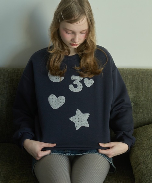 Birthdayroom NEW ARRIVAL TREND ITEM!《キュートなモチーフで魅せる、主役級パッチワークスウェット》星・月・ハートの立体的なフェルトパッチが目を惹く、遊び心たっぷりのスウェット♡ほんのり丸みのあるシルエットとゆったりめのサイズ感で、リラックス感もありながら、存在感のある1枚に仕上げました。トーンを抑えた配色で甘くなりすぎず、大人ガーリーにもぴったり◎ベーシックで合わせやすい「ホワイト」「ネイビー」、落ち着いた雰囲気の「ブラウン」の3色展開です。--- POINT ---・フロントに施した4つのパッチワークが目を惹く主役トップス・ボディと同系色の配色で、大人も着やすいデザイン・ラフに着られるゆるめシルエット・1枚で着映える主役級アイテム・ホワイト/ブラウン/ネイビーの3色展開--- FABRIC ---●素材:綿65%、ポリウレタン35%●裏地:なし●透け感:なし(ホワイトはややあり)●伸縮性:あり●カラー:ホワイト、ブラウン、ネイビー--- SIZE ---FREE着丈:56.5cm身幅:54cm肩幅:56cm袖丈:52cm--- ATTENTION ---※パッチ部分の縫い付け位置には個体差がございます。あらかじめご了承ください。※ホワイトは透けが気になる場合がございますので、インナーの着用をおすすめします。※照明や撮影環境により、実際の色味と異なる場合がございます。予めご了承ください。--- INFORMATION ---〈商品のお気に入り登録〉ハートマークを押して再入荷通知を受け取ろう!完売カラーもいち早くチェック♡--- Birthday room / バースデイルーム ---トキメキを詰め込んだロマンティックな世界観毎日がバースデーのような「特別なギフト」をあなたに。