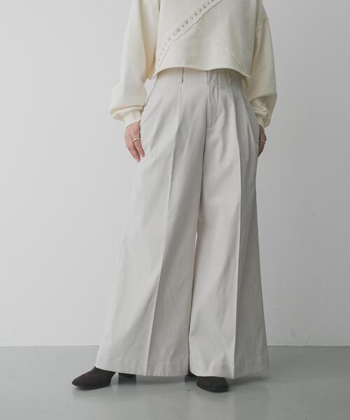 XS, LサイズはWEB限定サイズです。【スタイルアップも。トレンドの太めバギーパンツ】・ハリのある高見え素材を使用し、上品で洗練された印象に・太めのバギーシルエットが、体型カバーとスタイルアップを両立・シワになりにくい素材で、デイリーユースに最適な実用性ハリのある高見え素材を使用したバギーパンツ。上品な印象を与えつつ、シワになりにくいため、デイリーに気兼ねなく着用できます。太めのバギーシルエットは、脚のラインをカバーしつつ、スタイルアップ効果も抜群。シンプルなトップスと合わせるだけで、トレンド感あふれる着こなしが完成します。【2026 Spring/Summer】【26SS】※この商品は、摩擦や汗、雨などの使用条件等により、色落ちや他の物への色移りの可能性がございますのでご注意ください。※商品画像は、光の当たり具合やパソコンなどの閲覧環境により、実際の色味と異なって見える場合がございます。予めご了承ください。※商品の色味の目安は、商品単体の画像をご参照ください。▼お気に入り登録のおすすめ▼お気に入り登録された商品は、マイページにて現在の価格情報や在庫状況の確認が可能です。お買い物リストの管理にぜひご利用ください。素材感透け感 : ややあり(IVORY)伸縮性 : あり裏地 : なし光沢 : ややあり(BEIGE)ポケット : ありXSMLS