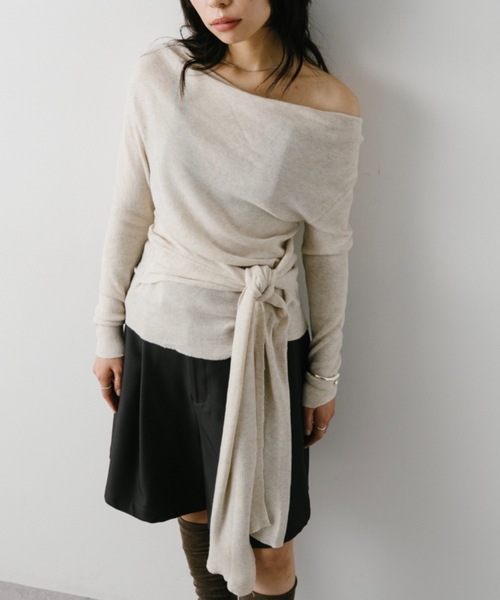 《華奢見えさせてくれるニットトップス》□POINT•片側の肩がのぞくアシンメトリーなオフショルデザイン•ウエストのリボンディテールが自然なくびれをつくり、スタイルアップが叶う•しなやかで肌あたりの良いニット素材を使用し、着心地も軽く快適•シンプルながら華やぎのあるシルエットで、1枚でコーデの主役に•スカートにもパンツにも合わせやすく、きれいめにもカジュアルにも使える万能トップス□COLORアイボリー/ブラック□SIZEフリー------------------------透け感/アイボリーはややあり光沢感/なし伸縮性/あり裏 地/なし厚 み/普通------------------------※撮影画像はサンプルを使用しているため、実際の商品とカラー、仕様、加工、サイズが若干異なる場合がございます。使用しているパソコンや携帯電話により、実際のカラーと異なって見える場合がございます。予めご了承ください。【ブランド紹介】「DRWCYS」トレンドを加味しながらモード感を残し、媚びないセンシュアルなお洋服を提案いたします。【SNS掲載情報】@drwcys_official公式Instagramアカウントにて新作情報をはじめ多彩なコンテンツを掲載しております。ぜひご覧くださいませ。【お買い物をもっとお楽しみいただくために】▼商品のお気に入り登録▼完売カラーの再入荷通知や、人気アイテムのラスト1点通知、プライスダウンしたセール通知も受け取ることができます。※ご注文いただいた予約商品のお届け時期の確認は、注文履歴ページより行えます。※他のキャンペーンにより、期間中に価格が変動する場合があります。※セールは予告なく終了させていただく場合もあります。※ご注文いただいた予約商品のお届け時期の確認は、注文履歴ページより行えます。※他のキャンペーンにより、期間中に価格が変動する場合があります。※セールは予告なく終了させていただく場合もあります。※ご注文いただいた予約商品のお届け時期の確認は、注文履歴ページより行えます。