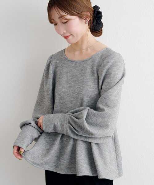 柔らかい表情を持つペプラムシルエットのトップス■デザインウエスト切り替えからふんわり広がるラインが自然に体型をカバーしつつ、スタイルアップ効果も◎袖には程よいボリュームを持たせ、リラクシーながらも上品な印象に仕上げました。デイリーにも、ちょっとしたお出かけにも活躍する一枚です。■生地感軽やかで柔らかく、ほどよい厚みのスウェット素材。表面は微起毛でニットのようなあたたかみがあり、見た目にも優しい風合い。内側はさらっとしていて着心地がよく、秋冬のレイヤードスタイルにもぴったりです。***********************洗濯方法:手洗い可能裏地:なし透け感:なし(アイボリーのみややあり)伸縮性:ややあり光沢感:なし生地の厚さ:普通***********************■スタイリングデニムやワイドパンツを合わせてカジュアルに、スカート合わせで女性らしくも楽しめます。ショート丈アウターを羽織ればバランスの取れた冬スタイルに。ボリュームスリーブを活かして、アウターから袖を少し覗かせる着こなしもおすすめです。▼おすすめスタイリングアイテムB ニットライクスウェットハーフパンツピンストライプスラックスベロアチュールパンツ【B Kastane&オンラインショップ限定発売アイテム】ファッションやカルチャーを起点とした感性で、ライフスタイルすべてを自分らしく楽しみたい方に向けたニュースタンダードを提案。【お取り扱いの注意】※着用時、洗濯時は必ず取り扱い表示・タグをご確認の上、お取り扱いください。※サイズ採寸は各モールによって異なり、多少の誤差が生じる可能性がありますのでご了承ください。※商品画像はサンプル品を使用しているため、実際の商品と仕様、加工、サイズが若干異なる場合がございます。また、可能な限り実物に近いカラーにて掲載していますが、使用しているパソコンのモニター設定や、携帯電話のメーカー・機種により実際のカラーと異なって見える場合がございます。予めご了承ください。▼商品のお気に入り登録ハートマークをクリックし、お好きなカラーを選んでお気に入りに登録完売カラーの再入荷通知や、ラスト1点の通知、セールの通知も受け取ることができます。▼ブランドのお気に入り登録新商品や再入荷等、いち早くブランドのお得な情報を受け取ることができます。<返品・キャンセルについて>・着用・洗濯後の返品・ご交換は致しかねます。・商品到着後、着用前に商品を確認して頂きますようお願い致します。
