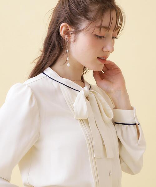 ▼▼気になるアイテムはハートマークをクリック▼▼ぜひお気に入り登録してチェックしてください♪リボンタイがドッキングしたブラウスです~POINT~フロントの細いタック使いが1枚で着たときも華やかで可愛いです衿元と袖口に細い配色パイピングを施し、アクセントに!釦はくるみ釦で上品でクラシカルな雰囲気にしました。ニットカーデやジレと重ねて着たときにも合うバランスにしています。・前開き【素材】透けにくいしっかりめのジョーゼット素材です。※照明の関係により、実際よりも色味が違って見える場合があります。また、パソコン・スマートフォンなどの環境により、若干製品と画像のカラーが異なる場合もございます。【スタッフコメント】shino(164 )配色デザインが顔まわりをぱっと明るく見せてくれる、上品なタックタイブラウス一枚で華やかさがあり、ジャケットインでも映えるアイテムです!【26SS NEW ARRIVAL】【26SS NEW COLLECTION】モデル情報:身長163cm B81 W56 H82 着用サイズ:38(M)店舗へのお問い合わせ商品番号:508-85028●製品寸法:36(S):着丈56cm B94cm 袖丈57cm 肩幅35cm38(M):着丈57cm B97cm 袖丈58cm 肩幅36cm40(L):着丈58cm B100cm 袖丈59cm 肩幅37cm42(LL):着丈58cm B103cm 袖丈60cm 肩幅38cm備考:
