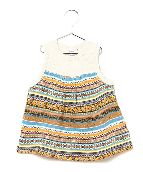 SHIPS KIDSのオリジナルのワンピースです。ベビーサイズのみ展開のジャカードノースリーブワンピース。ネイティブ調の温かみのある色使いがポイント。トップスはミニ裏毛を使用しています。袖なしタイプなのでインナーにカットソーやタートルネックを合わせたレイヤードスタイルで着回しをお楽しみください。 SHIPS各店へは下記品番にてお問合せください。型番:514-54-0139