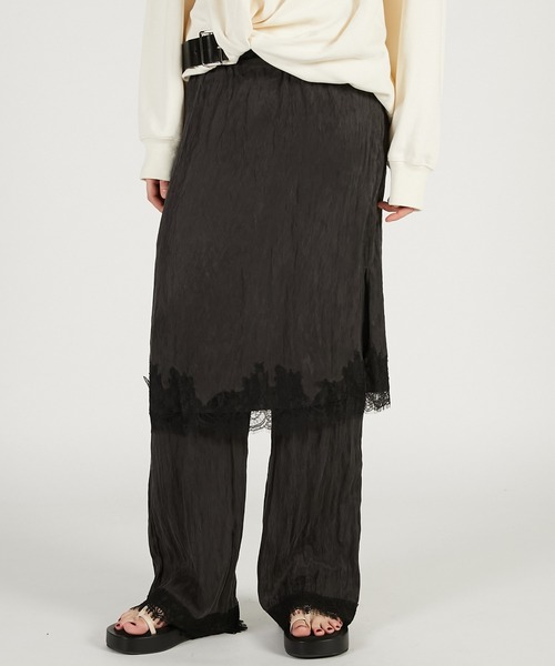 ー Style ーレースをあしらったフェミニンなムード漂う2WAYパンツ。スカートとパンツが別々にも使えて、スカートをベアトップ風に着てパンツと合わせるオールインワン風の着こなしもおすすめ。着回しのパターンが豊富で日常使いはもちろん、旅行等の際に一着あると大変重宝するアイテム。ジャケットやブルゾン、ニット、スウェットなどオーバーサイズのものと合わせるとバランス◎ー Fabric ー無地:シボ感のあるテンセルナイロンを使用し、シルクのような肌触りと吸湿性に優れドライタッチで着やすい一着。チェック:落ち感のあるレーヨン混のポリエステル素材を使用し、ドライタッチで清涼感のある素材。【PRANK PROJECT/プランクプロジェクト】常識に縛られない洗練された大人の女性に向けて”意外性” と ”品の良さ” をMIXさせた上質なNEW MODE BRAND・商品のお気に入り登録再入荷、残り1点などの通知を受け取ることが出来ます。・ブランドのお気に入り登録新商品や再入荷、ショップのおすすめトピックスなど、いち早くブランドのお得な情報を受け取ることができます。