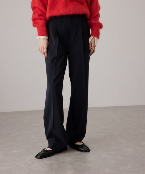 《セットアップ対応・イージーケア》細身の美シルエットでナチュラルにスタイルアップ。オケージョンシーンでも活躍する、機能性も兼備したセンタープレスストレートパンツ◇26SS◇ ADAM ET ROPE' FEMME 【Material】 ポリエステル×ポリウレタンの2WAY超ストレッチ素材を使用。 原糸の特性による、独特な膨らみと高密度構造によって生まれる程よいハリ感が特徴。 しわになりにくく、ウォッシャブル仕様でお手入れも簡単。 さらにUVカット機能も備えた、高機能素材。 【Design】 フロントに施したセンタープレスが、脚のラインをまっすぐに見せるすっきり細身のストレートスラックス。 ウエストはマーベルト仕立てで、フィット感のある着心地と機能性を兼ね備えたアイテム。 オン・オフどちらのシーンにも馴染む、きちんと感のあるシルエットが魅力。 チューリップスリーブプルオーバー(品番:GAH06060)とセットアップとしてはもちろん、単品使いでも着回し力の高い1着。 【Color】 凛としたネイビーと柔らかい印象のベージュの2色展開。 【Styling Point】 ベーシックにセットアップ合わせもおすすめ。 細身のシルエットなので、ボリュームのあるブラウスなどと合わせても◎ --------------- 透け感:なし 裏地:なし 伸縮性:あり 光沢感:なし 生地の厚さ:やや厚手 開き方:ファスナー開き ポケット:あり --------------- ◇モデル情報 身長:165cm size:38 ※撮影時の光、お使いのモニター環境によって色の見え方が違う場合がございます。