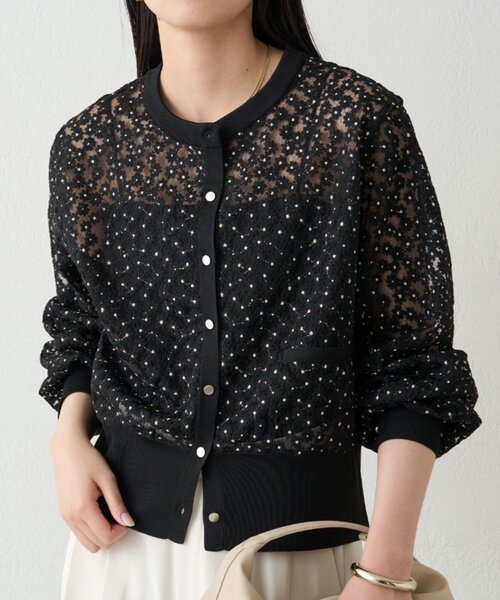繊細なレースが軽やかな印象をプラス。大人フェミニンなレースカーディガン ■デザイン 全体に散りばめられた小花柄のレースは、上品で繊細な印象を与えます。 シアーな素材感は、インナーの色やデザインによって様々な表情を見せ、 いつものコーディネートにフェミニンなエッセンスをプラスします。 袖口のリブが全体のシルエットを引き締め、どんなボトムスとも相性が良く、バランスの取りやすい丈感です。 ■コーディネート Tシャツとデニムのシンプルなスタイルに羽織れば、一気に華やかな印象に。 あえてカジュアルなインナーを合わせて、大人の抜け感を演出するのもおすすめです。 足元はパンプスやサンダルで、女性らしさをプラスするのがおすすめです。 ■素材・洗濯表記 本体:ナイロン100% 刺繍部分:ポリエステル100% ニット部分:ポリエステル100% 洗濯表記:手洗い可 ●もみ洗いは避け、押し洗いをしてください。 ●浸け置き洗いや、色物と白物を一緒に洗濯すると、 色移りすることがありますので避けてください。 ●洗濯又はクリーニングの際は、裏返してネットを使用して下さい。 ●洗濯後は、速やかに形を整えて平干ししてください。 ●タンブラー乾燥はできません。 ●アイロンの際は、当て布をしてください。 ●アイロンの際は、付属・装飾部分には当てないでください。 ●洗濯により若干の縮みが生じる場合があります。 【お気に入り登録でお得な情報をお知らせいたします 】 完売カラーの再入荷やラスト1点の通知、セールの通知を受けとることができます。 【ブランドのお気に入り登録】 新商品や再入荷、いち早くセールやクーポンなどのブランドの情報を受けとることができます。 生産の都合上、お届け時期が前後する場合がございます。 システムの都合上、店舗より入荷が遅れる場合がございます。 実際にお届けする商品と仕様やサイズが異なる場合がございます。 照明や光の当たり具合で色味が違って見える場合があります。