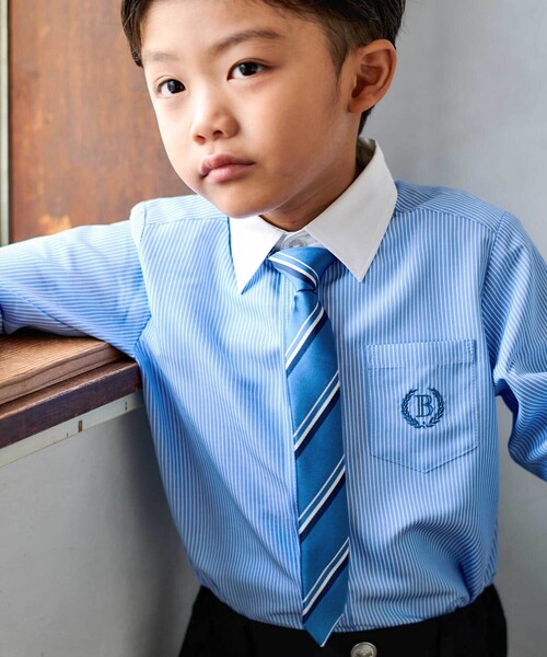 -26SS- レジメンタルの柄の配置がおしゃれなネクタイ。 ■デザイン ホックで簡単に取り外しができ、アジャスターでフィット感の調整が可能。 ブルー系・グレー系ともにトラッド感がありお顔周りを凛と見せてくれるアイテムです。 シンプルになりがちなシャツスタイルのアクセントにぴったりなネクタイ。 ハレの日のコーデにきりっとした表情をプラスしてくれます。 ※柄の出方は生地の裁断により一点一点異なります。 26春夏 男の子アイテム 【2026年春 入学 卒園 COLLECTION】 入学式や卒園式など特別な日に彩りを添えるフォーマルアイテム。 フレッシャーズにぴったりな品の良さ・華やかさのあるアイテムを揃えました。 主役のこどもたちの自分らしさに寄り添うオケージョンコーディネートを見つけてください。 【BeBe(べべ)】 ”LOVE MODERN” 少しおませで、生意気なヨーロピアンカジュアルの提案。 時代性・流行性をとらえ、ベーシックでもワンポイントを施した遊び心、楽しさを盛り込んでいます。 シンプルだけど、こだわりのあるオリジナリティーを重視しています。