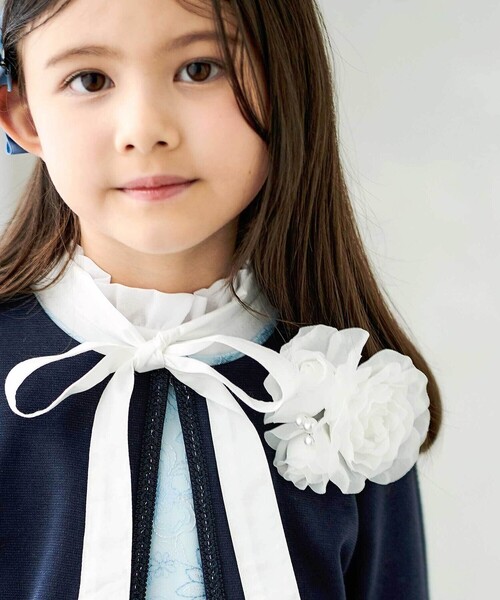 -26SS- パールのポイント使いがキレイなフラワーコサージュ。 ■デザイン 大きさの異なるお花をぎゅっと集めたブーケのようなモチーフ。 立体感がありコーデのポイント使いにぴったりです。 すっきりとしたホワイトとライトブルーのカラーでお洋服のカラーを選ばず使いやすい。 ポイント使いのパールモチーフが華やかに見せてくれます。 ※花びらは切りっぱなしの仕様の為、繊維の飛び出しが端に出る場合がございます。 26春夏アイテム 【2026年春 入学 卒園 COLLECTION】 入学式や卒園式など特別な日に彩りを添えるフォーマルアイテム。 フレッシャーズにぴったりな品の良さ・華やかさのあるアイテムを揃えました。 主役のこどもたちの自分らしさに寄り添うオケージョンコーディネートを見つけてください。 【BeBe(べべ)】 ”LOVE MODERN” 少しおませで、生意気なヨーロピアンカジュアルの提案。 時代性・流行性をとらえ、ベーシックでもワンポイントを施した遊び心、楽しさを盛り込んでいます。 シンプルだけど、こだわりのあるオリジナリティーを重視しています。